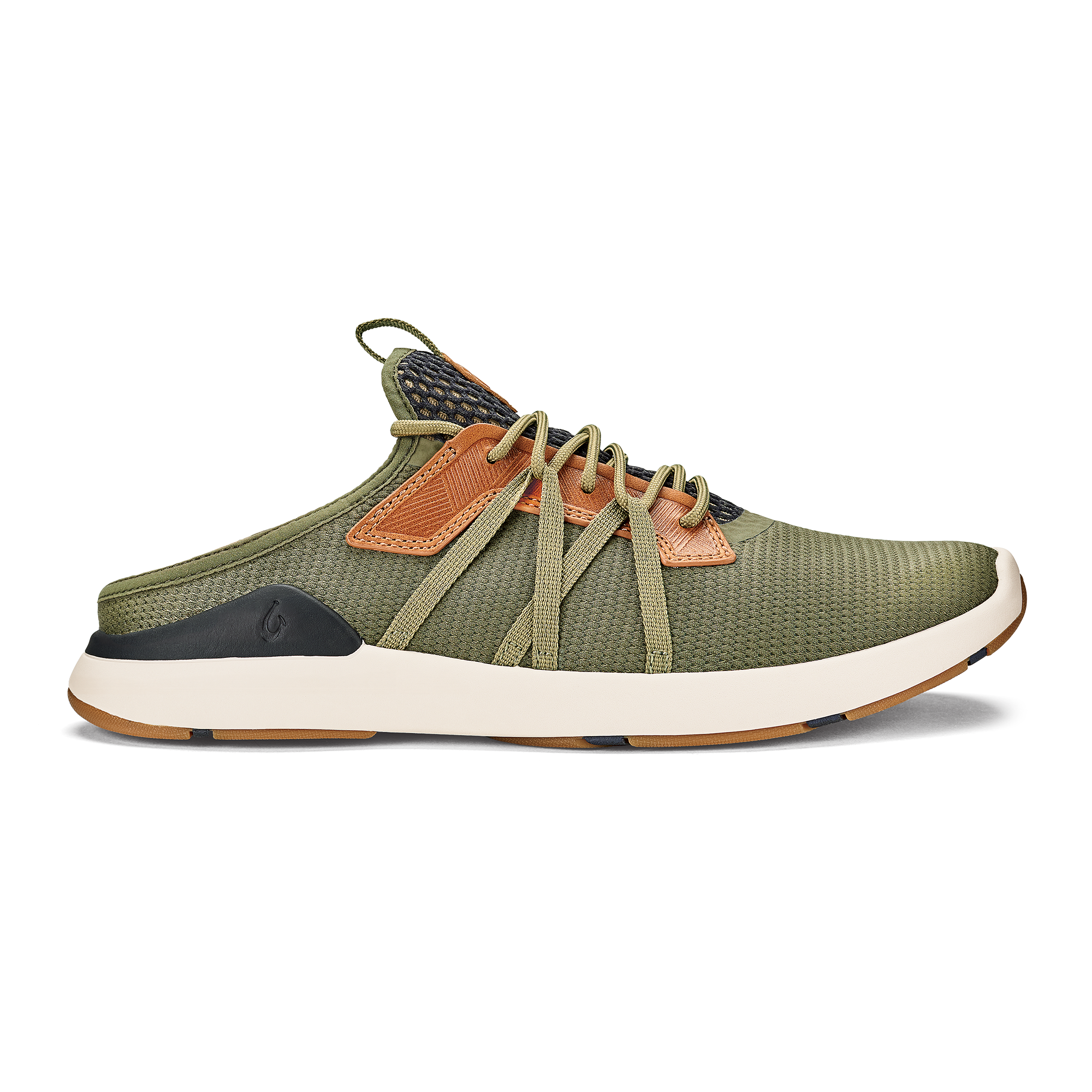 OluKai Craftsmanship: Hawaiian kapa debossed leather accents add a touch of elegance.